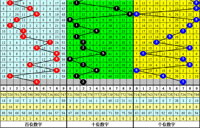 百位分析:该位最近10期出现范围在1-8之间,波动了8个点位,波动范围较大,上期开出号码1,下降了7个点位,本期预计该位号码上升。另外该位最近10期大小比为5:5,相等,本期看好开出大号,参考号码5。