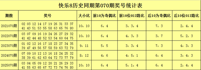 聂飞云历史同期快乐8第070期奖号分析